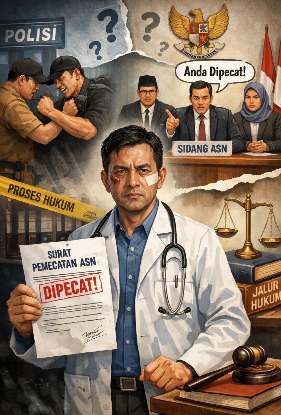 DETIKBABEL.COM, TOBOALI – Nasib pahit menimpa mantan Direktur RSUD Junjung Besaoh, dr Fauzan. Di tengah upayanya mencari keadilan atas kasus pengeroyokan yang diduga melibatkan oknum anggota kepolisian yang juga ajudan Bupati Bangka Selatan, ia justru dihadapkan pada ancaman pemecatan sebagai Aparatur Sipil Negara (ASN).