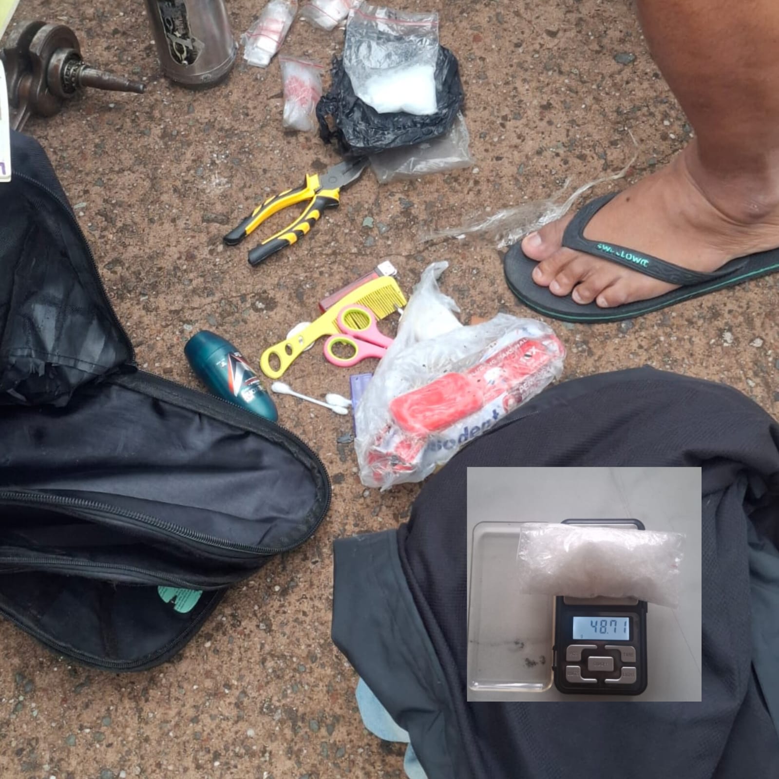 “Setelah dibongkar, di dalamnya terdapat satu kantong besar kristal putih yang diduga narkoba jenis sabu dengan berat bruto kurang lebih 48,71 gram,” jelas Agus.