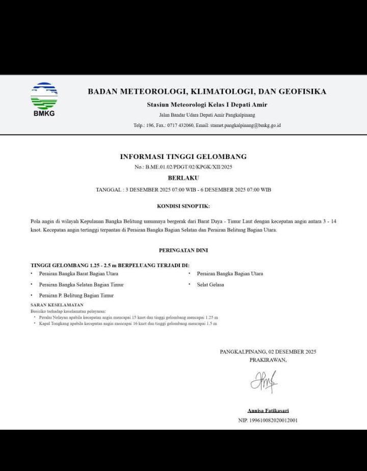 BMKG Babel – Gelombang 1,25–2,5 meter