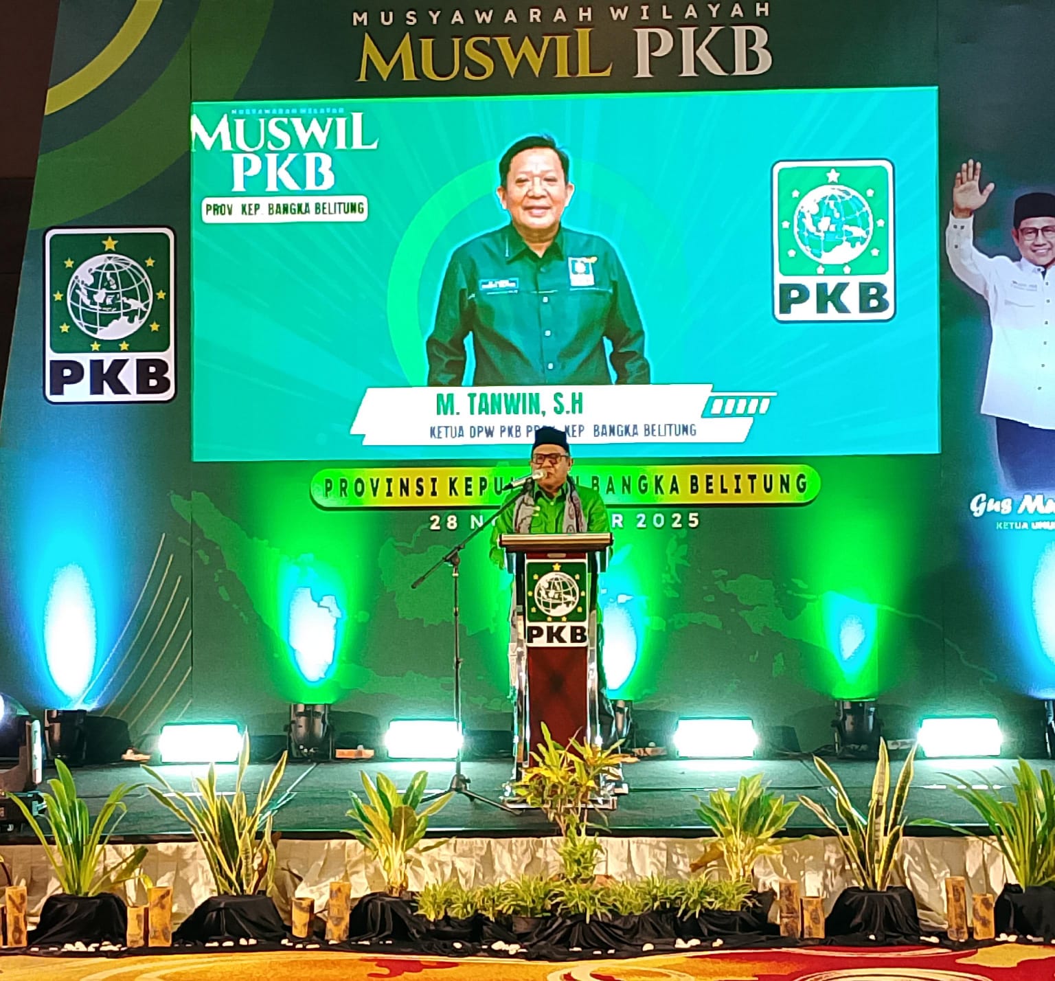 Ketua DPW PKB Babel, *Muhammad Tanwin*, menyampaikan rasa syukur dan kebanggaannya atas terselenggaranya Muswil ini. Ia yang telah 15 tahun mengemban amanah memimpin PKB Babel berharap Muswil kali ini mampu menghadirkan regenerasi terbaik bagi masa depan partai.