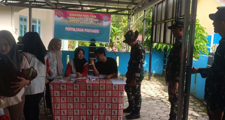 TNI Manunggal Membangun Desa (TMMD) Personel TMMD Ke-127 Dan Tenaga Medis Puskesmas Lepar,Berikan Penyuluhan Posyandu di Desa Penutuk Babel, Bangka Belitung, Bangka Selatan, Indonesia 24 jam, TNI,|February 12, 2026by farraz prakasa DETIKBABEL.COM, BANGKA SELATAN– Dalam rangka mendukung peningkatan derajat kesehatan masyarakat, personel TNI