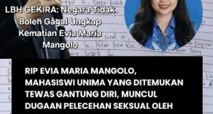 DETIKBABEL.COM, JurnalPatroliNews – Jakarta -Kasus kematian Evia Maria Mangolo, mahasiswi Fakultas Ilmu
