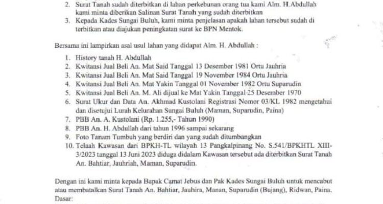 almarhum H. Abdullah, Sengketa lahan warisan Sengketa Lahan Warisan H. Abdullah, Kustolani Ajukan Keberatan dan Tempuh Jalur Mediasi Babel, Bangka Barat, Bangka Belitung, Indonesia 24 jam|April 29, 2026by farraz prakasa DETIKBABEL.COM, JEBUS — Sengketa lahan warisan kembali mencuat di Kecamatan Jebus, Kabupaten